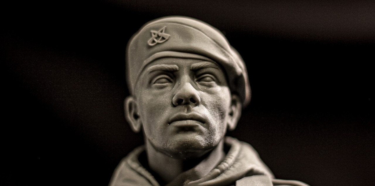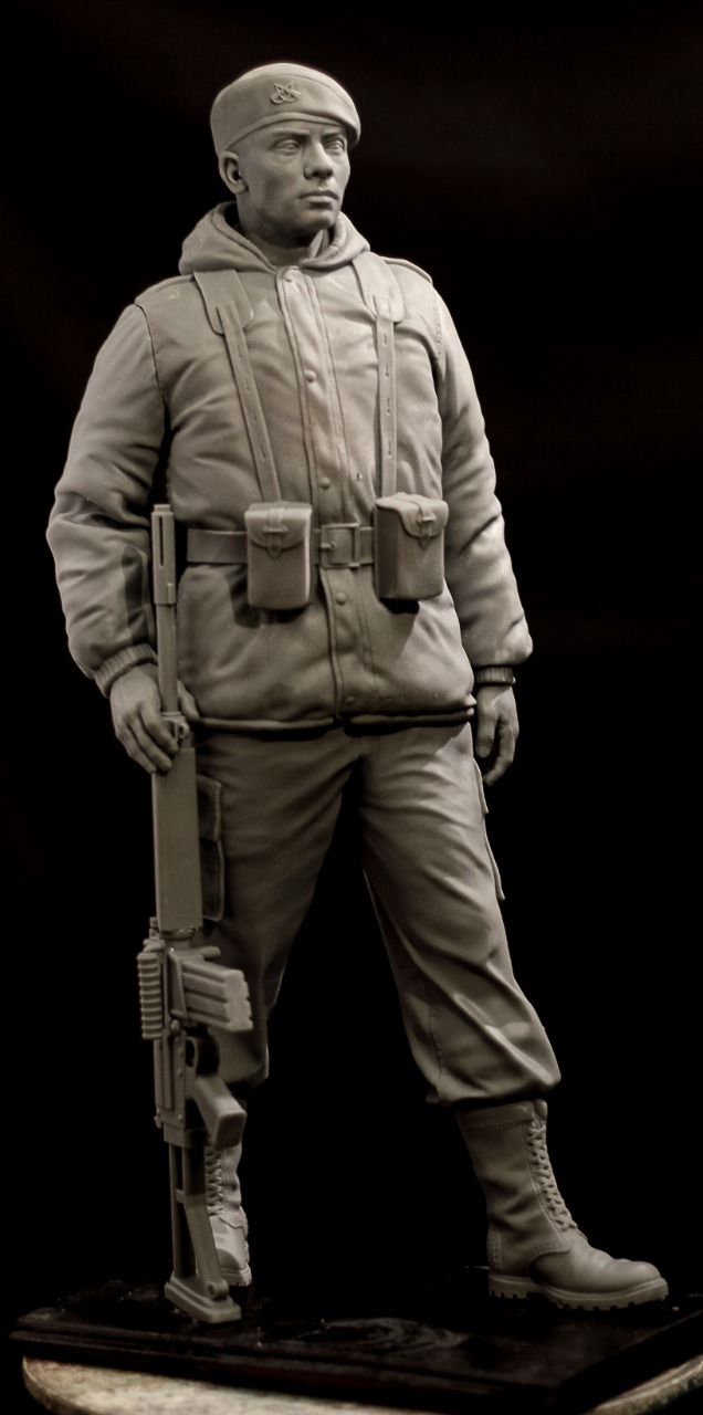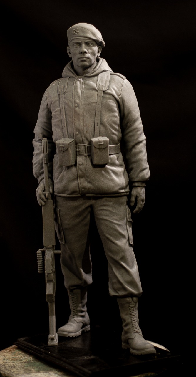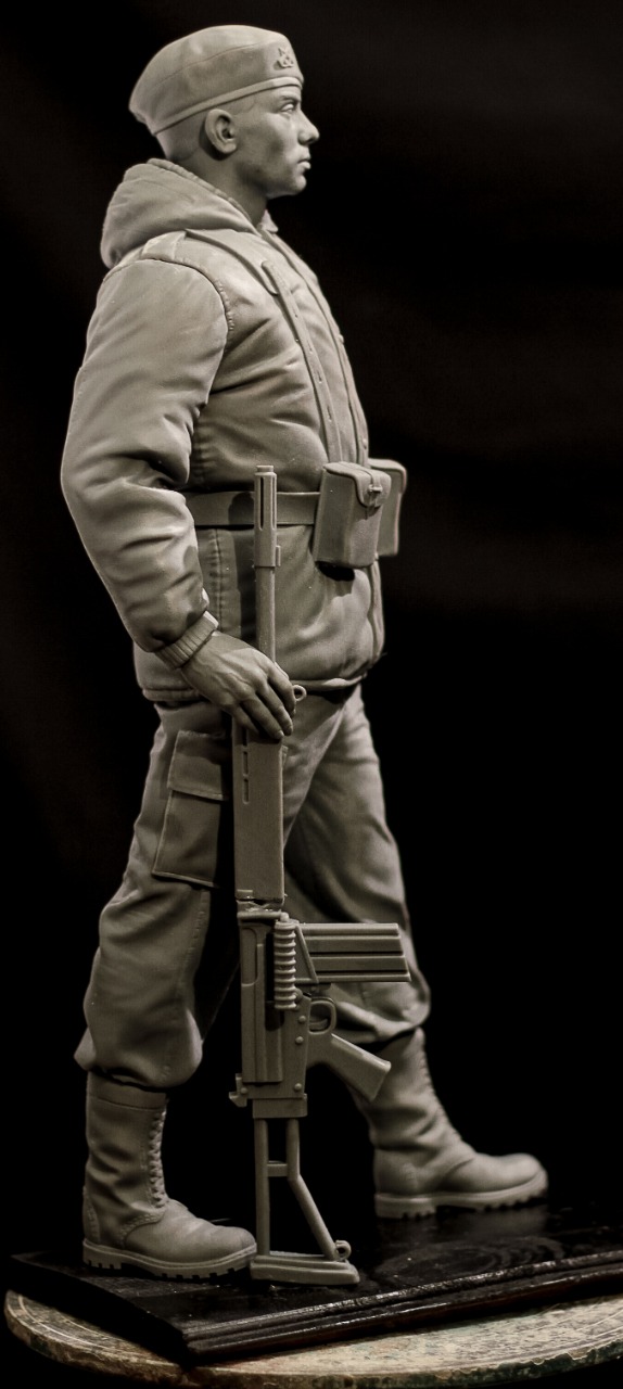Soldier sculpture on a scale